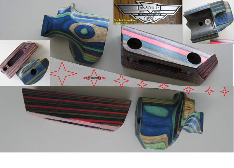 Anschütz-Pistolengriff aus Holz mit Befestigungsteilen aus Metall und Schaftbacke. Die Gegenstände sind neuwertig und noch nicht verwendet. Den Rest entnehmen Sie bitte den Bildern! Als Privatverkäufer schließe ich jegliche Gewährleistung ausdrücklich aus, auch kein Rückgaberecht möglich! Fragen bitte vor dem Bieten klären. Bei gewonnener Auktion wird eine Bezahlung innerhalb von 5Tagen erwartet! Weitere Bilder auf Wunsch möglich. Bei Sofortkauf erhalten Sie noch ein prachtvolles Anschütz-Metallschild kostenlos.