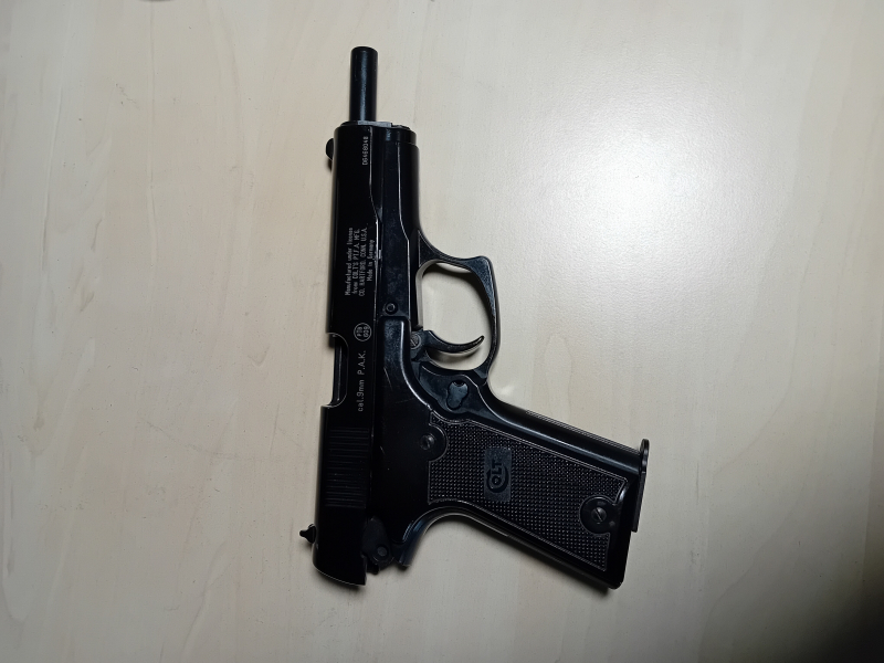 Versteigert wird eine Colt Double Eagle Cal. 9mm P.A.K. Die Pistole ist gebraucht und hat Gebrauchspuren (Zustand siehe Bilder). Die Pistole wurde von mir nicht testgeschossen, Mechanik funktioniert aber problemlos. Es wird ausschließlich die Pistole verkauft, Abschussbecher oder Verpackung ist nicht vorhanden. Es handelt sich um einen Privatverkauf, daher keine Garantie, Gewährleistung oder Rücknahme.