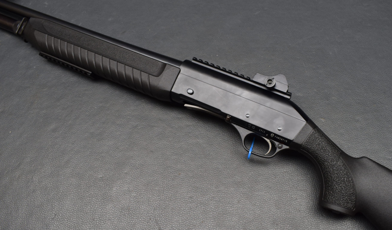Lauf mit Mündungsgewinde für Multichoke Einsätze, Mündungsbremse, 7+1 Schuss Magazinrohr unter dem Lauf.