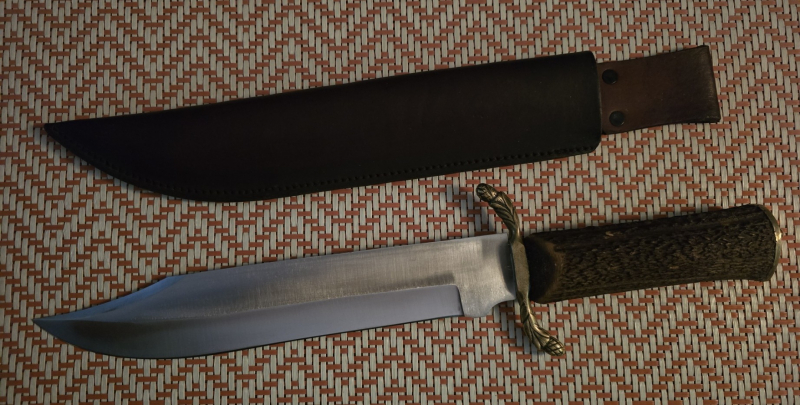 Großes handgemachtes massives Jagdmesser/Bowiemesser mit Lederscheide,HANDGEMACHT !!! Unbenutzt.