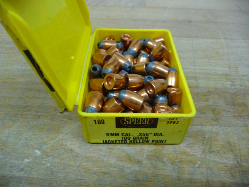 Hier wird z.B. eine angebrochene, fast volle Packung an Speer Geschossen im Kaliber 9 mm angeboten.