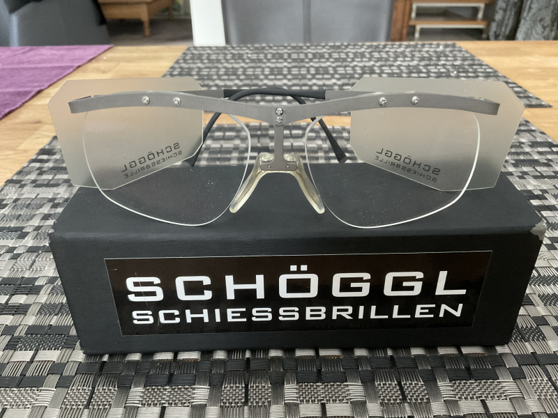 Sie bieten auf eine gebrauchte Schiessbrille Gestell inkl. Gläser von Schöggl aus Köln