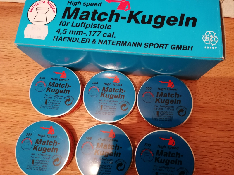 Angebot beinhaltet: 6 Dosen zu je 500 Stck. Diabolos 4,5 mm High speed Match von Haendler & Natermann ( ungeöffnet / neu ) wie auf dem Foto abgebildet.