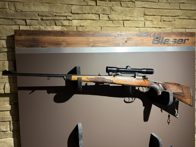 Zum Verkauf steht eine wunderschöne Karl Hauptmann Rep. Büchse im Kaliber 6,5x57. Die Waffe verfügt über handgestochene Gravuren mit Goldeinlagen. Auf der Waffe ist ein Zeiss Diavari 1,5-6 mit Absehen 4 in erster Bildebene mittels Einhakmontage montiert. Neben der klassichen Flügelsicherung besitzt die Waffe noch eine Schiebesicherung auf dem Kolbenhals. Durch das flach montierte Zielfernrohr, lässt sich die Flügelsicherung nicht auf die Teil-, oder Vollsicherung, mit montiertem Zielfernohr, stellen. Kann aber natürlich naträglich noch auf eine 45 Grad Sicherung umgebaut werden, sofern die Flügelsicherung komplett genutzt werden soll. Die handgestochene Fischhaut mit Ornamentgravur macht die Waffe extrem griffig und zeitlich optisch besonders und individuell. Das Schaftmagazin fasst drei Patronen. Die Waffe hat eine Gesamtlänge von 113cm. Der Hinterschaft hat eine Länge, gemessen von dem Abzug bis Mitte Schaftkappe, von 35,5cm. Die Lauflänge ist 62cm lang. Der Lauf verläuft von einer achtkant Form in eine runde Form über. Das Gesamtgewicht der Waffe beläuft sich inkl. Optik auf 3,75kg.