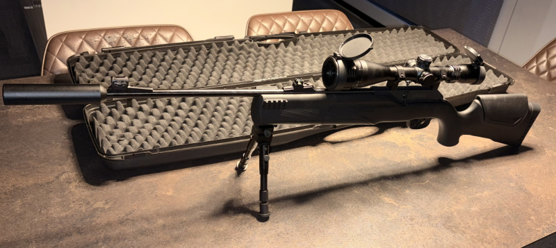Im XT Kit sind enthalten: ein Zielfernrohr 6x50, ein Schalldämpfer K3 Neo, Zweibein.