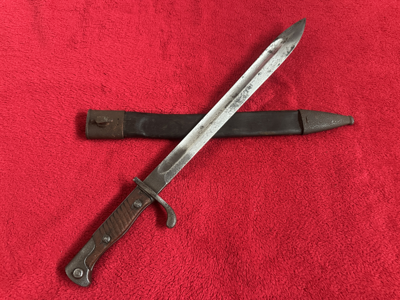 Wegen sammlungsverkleinerung.Originale Erhaltung wie ersichrlich mit Lederscheide,deformiert.Druckknopf mit Funktion.Die Bilder als Beschreibung beachten.Länge Ca.49cm. Von privat ab 1€ ohne Rücknahme.Versandkosten für die EU-Länder 20€.