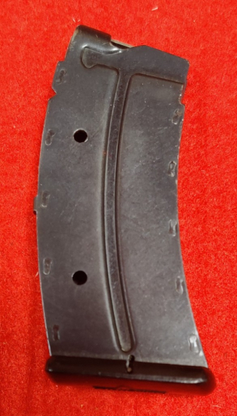 Das Magazin ist gebogen, 10-schüssig, gebraucht aber noch in einem guten Zustand und lässt sich einwandfrei mit Patronen befüllen - siehe Fotos.