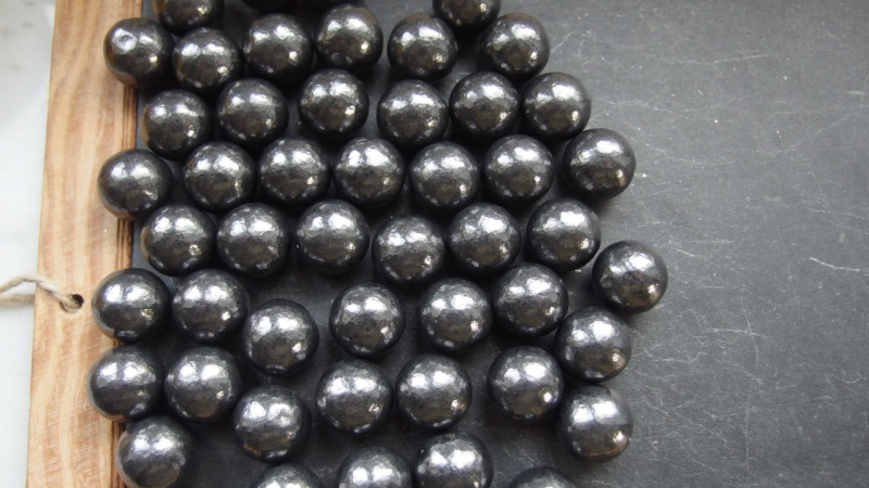 Die Kugeln sind mit etwas Graphit und Wachs behandelt. Dadurch glänzen sie sehr schön und man bekommt keine allzu schwarze Finger durch das Graphit.