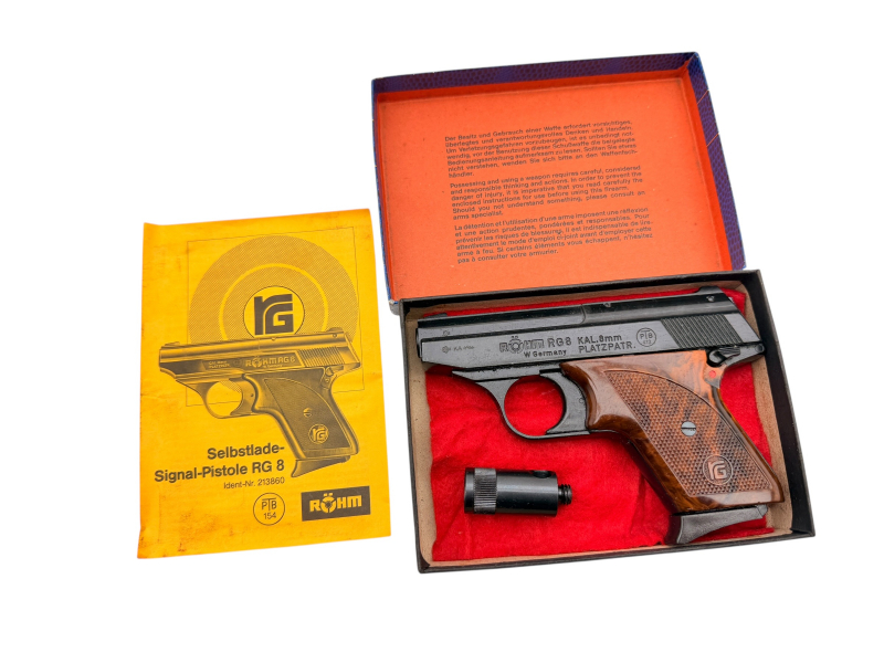 Zum Verkauf steht eine Röhm RG 8 Schreckschusspistole im Kaliber 8mm Platz mit der PTB-Nummer 412.