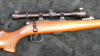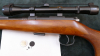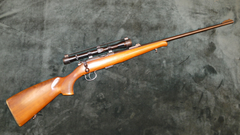Brünner (Brno Arms) Mod. 2, Kal. .22lr., altersgemäß sehr guter Zustand, Metallteile weitgehend rostfrei. Per Aufschubmontage ist ein Waldläufer 8x24 mit Absehen 4 montiert. Beschuß 1983, Lauf blank. Schußleistung sehr gut, siehe Bild: 5 Schuß mit Eley Standard auf 50m. Lauflänge 62cm, Schaftlänge 35cm, Gesamtlänge 108,5cm. Für einen sicheren Versand werden wir das Zielfernrohr demontieren. Die Kimme wurde zur Montage des ZF entfernt und ist leider nicht mehr vorhanden.