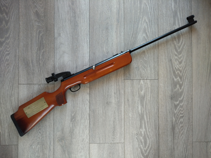 Ein Haenel 311 Luftgewehr das als ein Preis für Teilnehmern von XVIII. Geländefahrt "Rund um die MZ Stadt Zschoppau" vom IFA Kombinat Ernst Thälmann in Suhl gewidmet wurde. Einzigartiges Unikat.