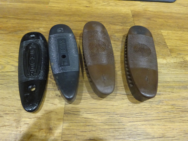 4 gebrauchte Schaftkappen 2 von Steyr, 2 von Sauer, als Konvolut aus einer Geschäftsauflösung, gut, günstig siehe Foto