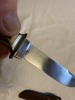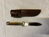Älteres Pumamesser mit passgenauenr Lederscheide. Fundzustand , ungereinigt. Wurde wohl mal überarbeitet und beschliffen, Puma Logo auf rechter Klingenseite nur schwach erkennbar. Nr. 34873. Alles fest, nix wackelt. Köcherscheide könnte mal etwas Lederpflege vertragen, Nähte einwandfrei. Schönes authentisches Vintageteil, möglicherweise 80er Jahre. Bilder sind Bestandteil der Beschreibung.