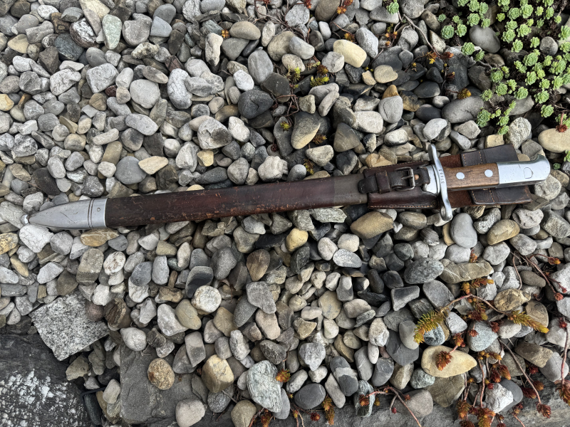 Sie bieten auf ein Faschinenmesser 1914 (auch Sägebajonett 1914 genannt) mit Lederscheide Das Bajonett ist in einem gebrauchten Zustand (siehe Karabiner 00/11 hergestellt ist es von der Waffenfabrik Neuhausen Es passt super auf jeden Karabiner 31 (K31), von den Massen her passt es aber auch auf den Karabiner 11 (K11) und den Karabiner 00/11 (K00/11).
