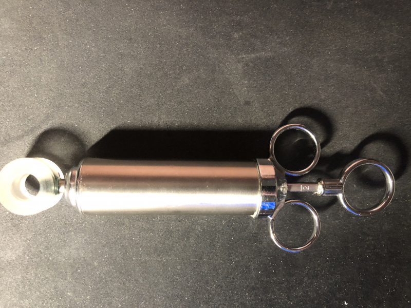 Massive Fettspritze in Chrom, Maße Länge des Fettkörpers 90mm Durchmesser 30mm, die Spitze ist ein 6mm Gewinde Geschnitten das die Fettringe mühelos aufgeschraubt werden können, auch wenn das Fett im Winter etwas steifer ist bekommt man es durch die Fingerhaken sehr gut Dosiert raus!