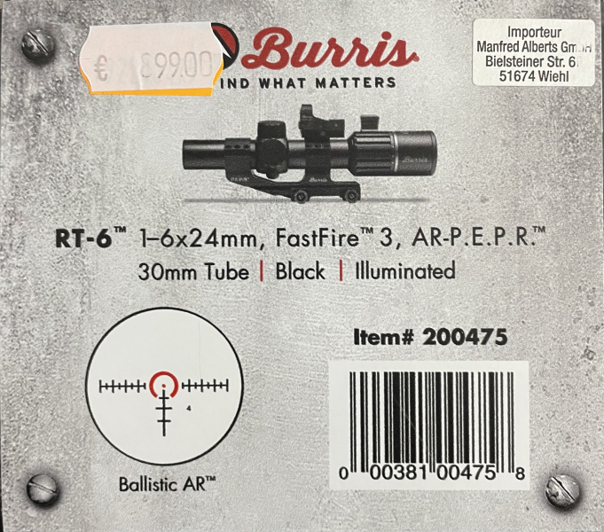 Nicht benutztes RT-6 1-6x24mm mit Fastfire 3 und Burris P.E.P.R Montage.