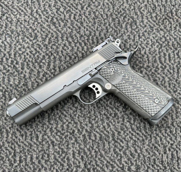 Umständehalber abzugeben: 1 Stück STI/STP Sentry 1911 mit 5“/127mm Lauflänge. STP fertigt hochwertige 1911 Pistolen in Deutschland. Magazinkapazität 10 Patronen. Es wurden von mir griffige G10 Griffschalen verbaut. Der Abzug bricht trocken bei 1.300 Gramm. Die Waffe befindet sich in einem guten optischen und technisch einwandfreien Zustand. Die Die Griffstücksicherung wurde fixiert, lässt sich aber auch wieder rückgängig machen. Der Sicherungsflügel auf der linken Waffenseite fällt etwas größer aus. Die abgebildeten Schussbilder wurden mit 124 Grains Vollmantelmunition auf 25m geschossen und sprechen wohl für sich. Inclusive Hartschalenkoffer und einem Reservemagazin. Einlagerung bis zum Erhalt des Voreintrages kostenlos möglich.