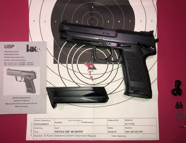 Die USP Expert ist kaum mit der Bundeswehr P8 vergleichbar, der Abzug ist deutlich besser. Das Kaliber .45 ACP schießt sich deutlich weicher.