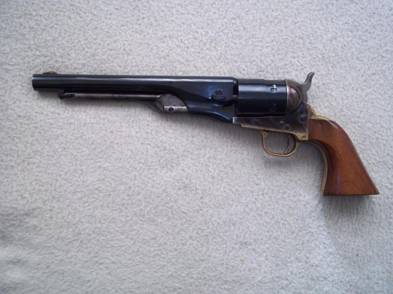 Sie bieten auf einen Revolver der Marke "Western Army 1860" Hersteller: Pietta/Made in Italy. Der Revolver hat das Kaliber 9mm Knall und ist mit verschiedenen eingeprägte Zeichen versehen. PTB 853. Gesamtlänge: 35 cm; Gewicht: 1285 Gramm. Die Waffe ist in allen Teilen funktionstüchtig, die Messingteile sind teils etwas angelaufen. Ohne Garantie und Rücknahme!