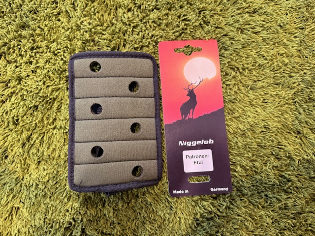 Kompaktes Patronenetui aus flexiblem Neopren für bis zu 6 große Kugelpatronen. Leicht, polsternd und vielseitig tragbar für sicheren Transport bei der Jagd.