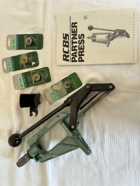RCBS Partner Press mit Lyman Zündhütchen-Ausstossmatrize und 4 Hülsenhalter