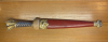 Die rote Scheide ist an beiden Enden mit reichverzierten goldenen Metallfassungen versehen.