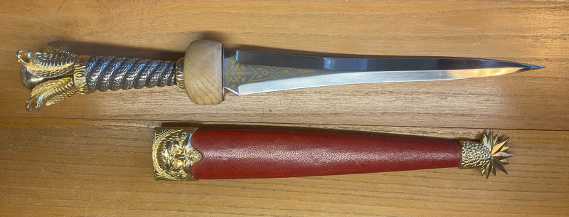 Vorsicht: Keine Deko! Die Klinge ist beidseitig scharf geschliffen, konisch verjüngend und das Ende nadelspitz.
