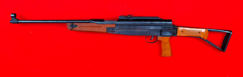 First Strike SP47 4,5mm, Seitenspanner. Wir haben hier ein First Strike-Luftgewehr, Einzelschuß als Seitenspanner. Gebrauchtes Seitenspanner Luftgewehr mit geringen Gebrauchsspuren, wurde tatsächlich nicht oft geschossen. Griffstück und Vorderschaft sind aus Holz gefertigt - Gehäuse und Lauf aus Metall - einklappbarer Hinterschaft ist mit Einlagen aus Kunststoff versehen. Lieferumfang: First Strike SP47 4,5mm ohne weiterem Zubehör.