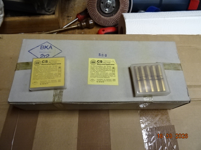 Eine ganze Kiste 500 Schuss CS Patronen kal.8mm!