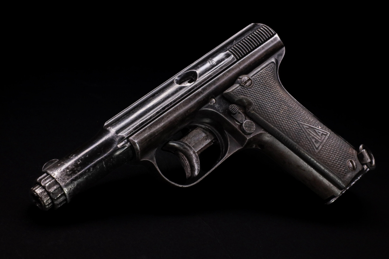 Das hier angebotene Stück gehört zu den frühen Exemplaren und besitzt die typischen Merkmale der Konstruktion, darunter ein halbautomatisches Double-Action-Only-System ohne außenliegenden Hahn, ein Sichtfenster zur Ladezustandskontrolle sowie eine integrierte Abzugssicherung.