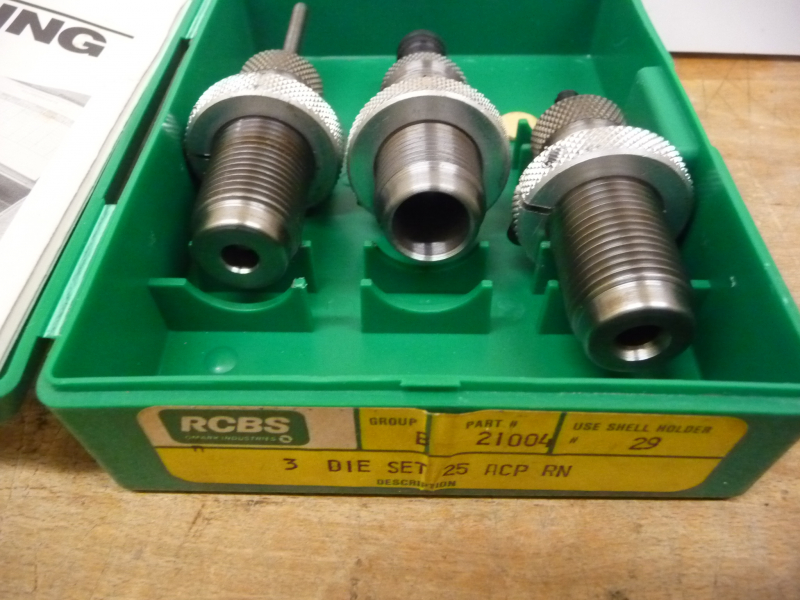 Hier wird ein gebrauchter Matrizensatz des Herstellers RCBS für das Kaliber .25 ACP angeboten.