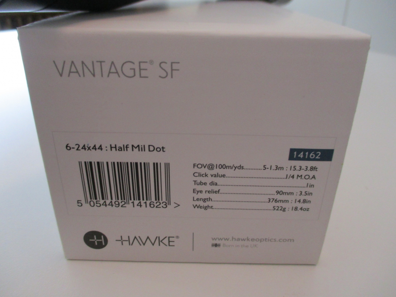 Hawke ZFR "gebraucht", Vantage SF 6-24x44 Half Mil Dot. Mit Parallaxe-Ausgleich. Das ZFR hat keine Beschädigungen, auch keine Klebespuren. Nur kaum sichtbare Gebrauchsspuren an einem Schutzdeckel . Neupreis liegt bei 359,- €. In Originalverpackung jedoch ohne Schutzdeckel.