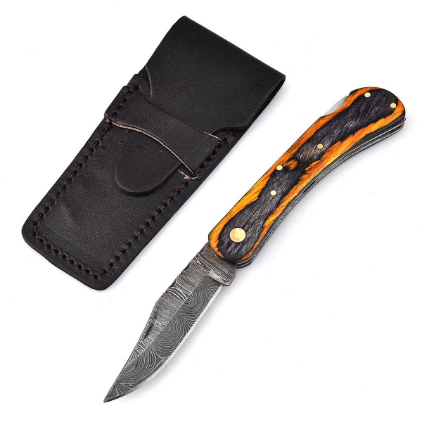 Hier erhalten Sie ein sehr schönes handgeschmiedetes Damast Taschenmesser / Klappmesser in reizvollem Torsion Muster.