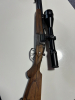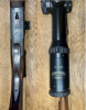 Montiert über eine Suhler-Einhak-Montage ist ein Zielfernrohr, Schmidt & Bender, Abs. L1 mit Leuchtpunkt. Das Zielfernrohr hat leichte Kratzer im Eloxal, die die Funktion nicht beeinträchten, siehe Fotos.