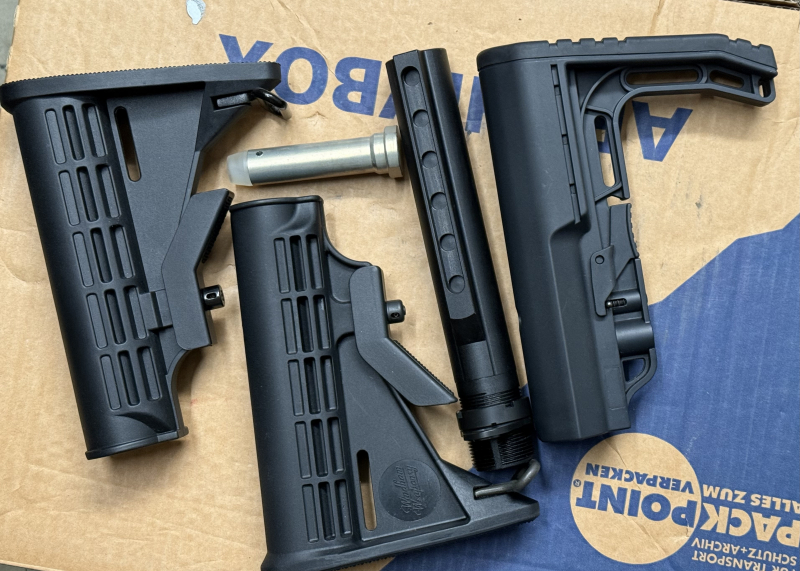 Siehe Bilder, 1x Buffertube Carbine Commercial, Maße siehe Bild, 1x Buffer, 3x Schulterstütze / Schiebschaft, diese passen auch für Milspec, haben dann aber etwas mehr Luft.