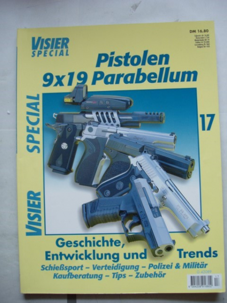 Für Schützen / Waffenfreunde und Waffensammler :+++ angeboten wird das VISIER - SPEZIAL Nr. 17 -- ** Pistolen 9x19 Parabellum ** -- Geschichte, Entwicklung und Trends -- Das große Sonderheft für Sportschützen, Sammler und Jäger -- Mit Themen zu -- Schießsport -- Tips -- Zubehör -- Verteidigung -- Kaufberatung -- Polizei & Militär. ++ Es ist ein Band - mit 115 Seiten - von 1999. (sicher schon eine Rarität) +++ Das Heft ist gebraucht ; befindet sich aber in einem sehr guten Zustand +++ Der Versand erfolgt als Großbrief mit DHL (unversichert) ; die Versandkosten gelten nur für Deutschland.+++ Bieter aus dem Ausland bitte Versandkosten vor Gebot erfragen.+++ Versandrabatt möglich, sehen Sie auch meine anderen Angebote.+++ Privatverkauf, daher keine Gewährleistung, Garantie oder Rücknahme.+++ Fragen bitte mailen.