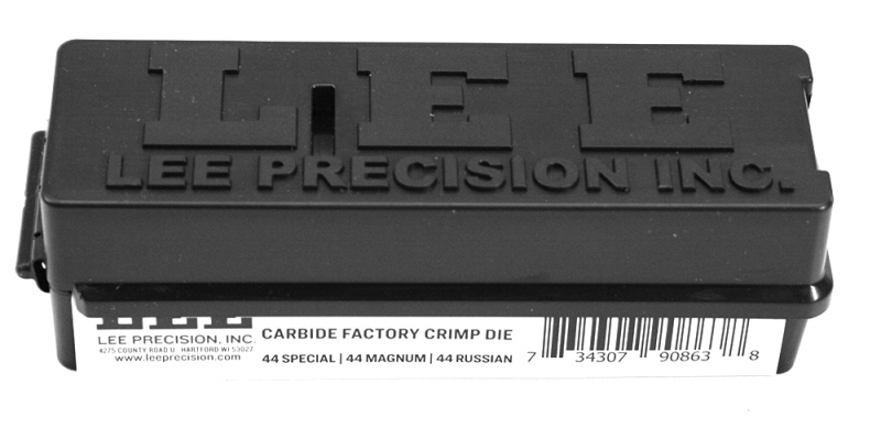 Die Lee 44 Special, 44 Magnum and 44 Russian Carbide Factory Crimp Matrize krimpt die Patrone, sodass jede Patrone mit werksüblicher Zuverlässigkeit sicher in die Kammer passt.