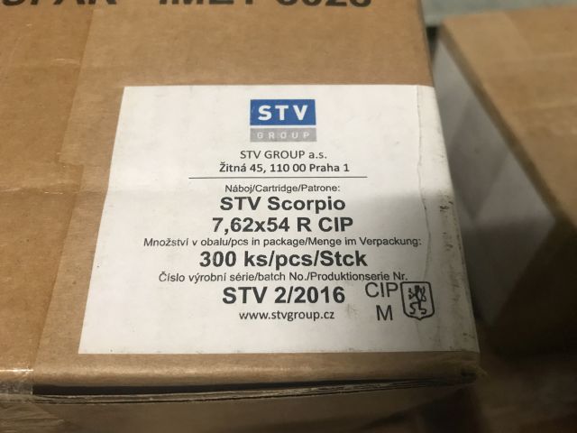 300 Schuß, 1Paket, originalverpackt, ungeöffnete STV Scorpio 7,62x54R CIP