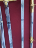 hier die abgebildeten sehr schönen Blankwaffen: 1 US-Prachtdegen mit Klingenverzierungen und Adlerkopf als Griffknauf ( Gesamtlänge 97cm / Klinge 74)