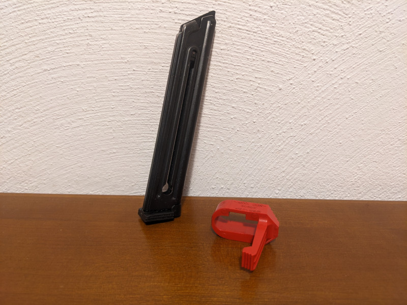 Sie bieten auf Original Magazin für Ruger MK2 in .22lfg mit einer Ladehilfe der Firma HKS.
