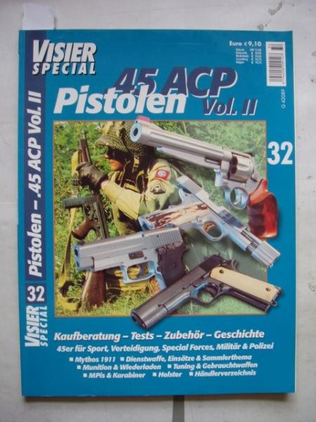 Für Schützen / Waffenfreunde und Waffensammler :+++ angeboten wird das VISIER - SPEZIAL Nr. 32 -- ** Pistolen .45 ACP II ** -- Das große Sonderheft für Sportschützen, Sammler und Jäger -- Mit Themen zu -- Kaufberatung -- Tests -- Zubehör -- Geschichte +++ Es ist ein Band - mit 115 Seiten - von 2004. (sicher schon eine Rarität) +++ Das Heft ist gebraucht ; befindet sich aber in einem sehr guten Zustand +++ Der Versand erfolgt als Großbrief mit DHL (unversichert) ; die Versandkosten gelten nur für Deutschland.+++ Bieter aus dem Ausland bitte Versandkosten vor Gebot erfragen.+++ Versandrabatt möglich, sehen Sie auch meine anderen Angebote.+++ Privatverkauf, daher keine Gewährleistung, Garantie oder Rücknahme.+++ Fragen bitte mailen.