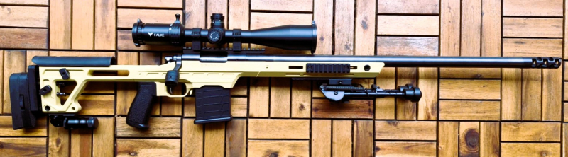 Die Büchse hat eine montierte Stahlschiene mit 20 MOA-Vorneigung, zur Zielerfassung ist ein Falke ZF 8,5-25 x 50 Montiert, auf Stahlringen montiert!