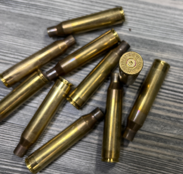 Einmal abgefeurte Fabrikmunition. Nicht wiedergeladen, kalibriert etc...