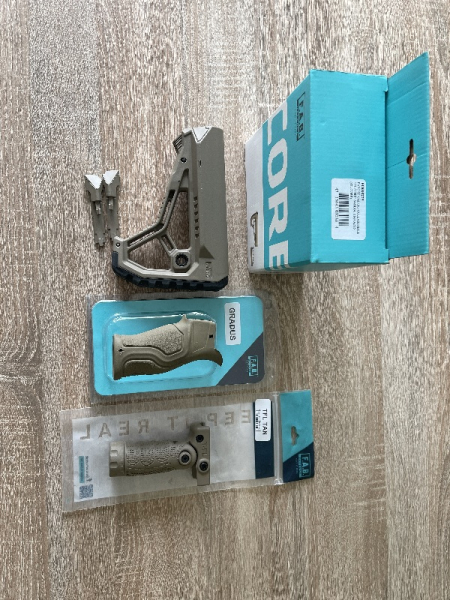 Zum Verkauf steht ein AR-15 Schaftset von FAB Defense in der Farbe FDE.