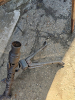 Die Teile zeigen deutliche Spuren langer Lagerung im Erdreich, einschließlich starker Korrosion, Lochfraß und Materialabtrag. Die charakteristische Lochstruktur des Laufmantels ist noch gut erkennbar, ebenso die Grundform des Zweibeins.
