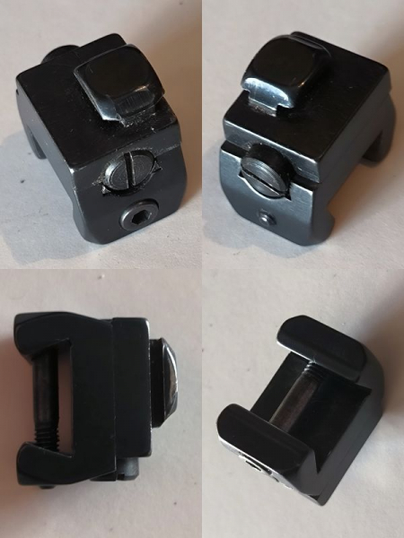 Der sehr hochwertige Hinterfuß ist aus Stahl gefertigt und für die Befestigung an einer Prismenschiene / Trapezschiene 70° vorgesehen.