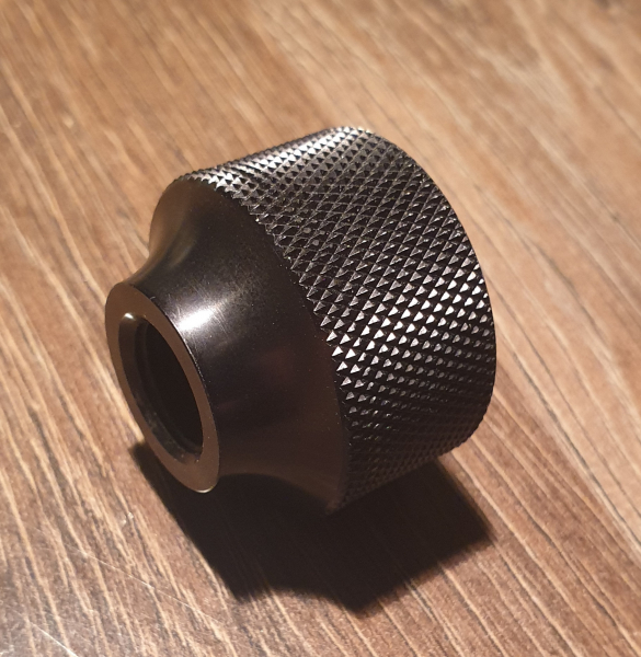 Biete hier einen passgenauen Adapter aus Aluminium für die Montage einer herkömmlichen PET Plastikflasche auf einem Gewindelauf mit 1/2 x 20 UNF oder 1/2 x 28 UNEF Gewinde.