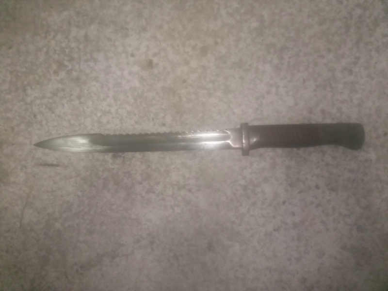 Bajonett mit sägerücken leicht rostnarbig, Drücker funktioniert, ohne scheide