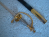 Preußischer Degen IOD a/A mit Lederscheide und Klappschanier. Klingenlänge 76cm, Gesamtlänge 97cm.