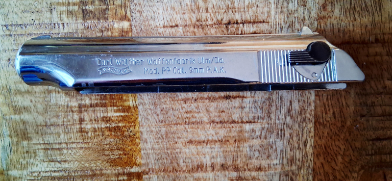 Biete einen Verchromten Schlitten für eine Walther PP an. Ptb 620. Ich sehe den Schlitten als neuwertig an. Privatverkauf, keine Garantie, Gewähr oder Rücknahme.